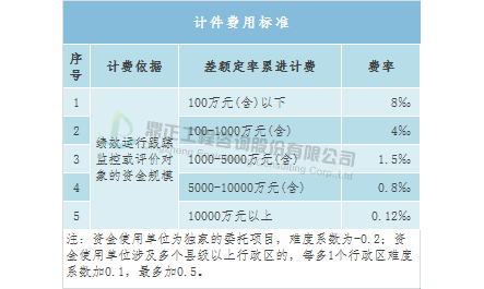 全咨單位參與預算績效管理服務取費可參考地方收費標準,如湖北省地方標準——《湖北省財政廳關于印發<湖北省第三方機構參與預算績效管理工作暫行辦法>的通知》(鄂財績規〔2014〕3號),績效運行跟蹤監控和績效評價全部委托服務采用計件收費方式的,以績效運行跟蹤監控或評價對象的資金規模為計費依據。
