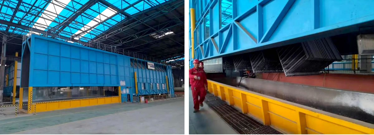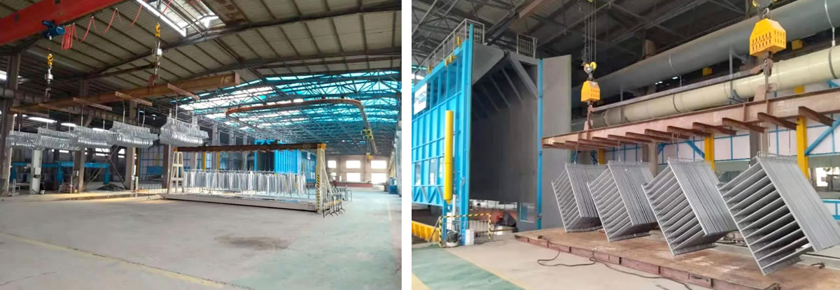 東營(yíng)東宸農(nóng)牧熱鍍鋅生產(chǎn)線的生產(chǎn)方式為吊鍍。該產(chǎn)線在原有舊廠房基礎(chǔ)上設(shè)計(jì)、制作、安裝、交付。鋅鍋尺寸為:長(zhǎng)9.5米,寬1.8,深2.8米,設(shè)計(jì)年產(chǎn)能為3萬(wàn)噸。鋅鍋生產(chǎn)節(jié)拍設(shè)計(jì)為6-10次/小時(shí)。該生產(chǎn)線為U型式布局,鍍鋅階段為端進(jìn)端出式,物流通暢,生產(chǎn)效率高。