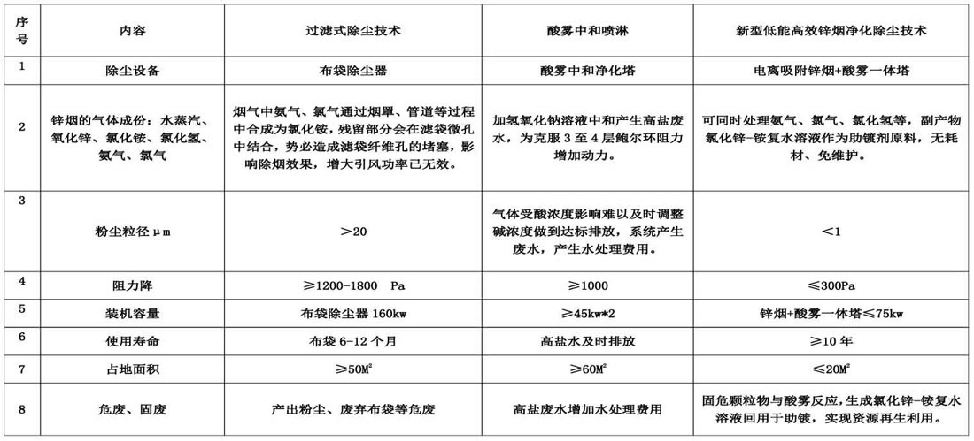 低能高效鋅煙凈化除塵技術優勢(以常規13.5米鋅鍋熱鍍鋅產線為例)
