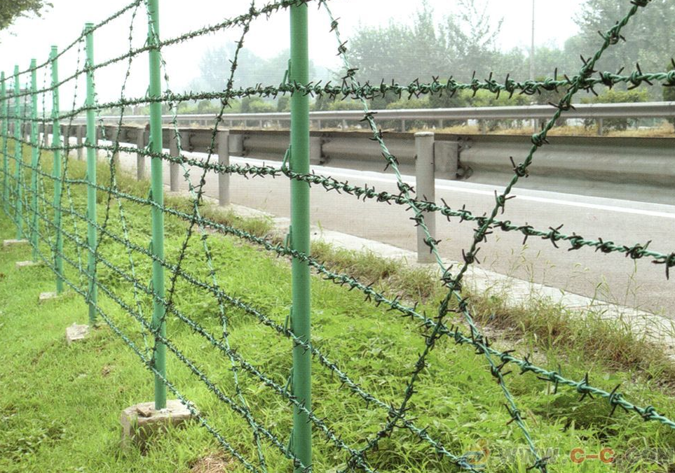 刺絲隔離柵又叫刺絲鐵絲網。刺絲又分為刀片刺繩,雙股刺繩和單股刺繩。刺絲隔離柵由刺鐵絲和立柱組成。