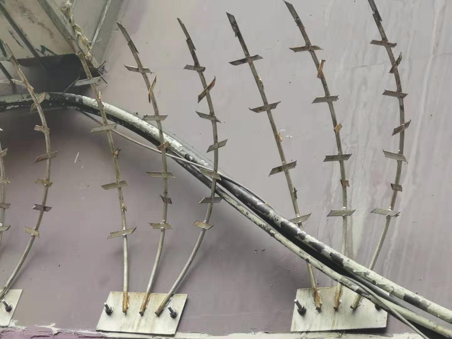 圍墻防爬刺是一種新型的防盜產(chǎn)品,本實用新型裝置安裝在建筑物體外墻的落水管上,可以有效的防止盜賊利用落水管攀爬入室盜竊,保證了高層住戶的安全,且安裝方便,通用性強,成本的,安全性高.本產(chǎn)品對于小區(qū)上水管, 燃氣管, 防攀爬,防盜效果佳,對小偷有很強的威懾性。