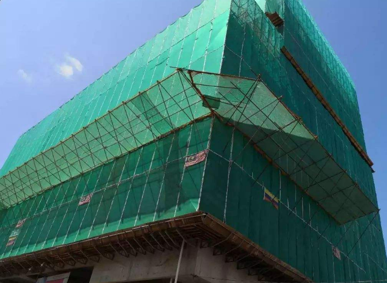 2.安全防護網的架設應里低外高,支出部分的高低差一般在5Ocm左右;支撐桿件無斷裂、彎曲;網內緣與墻面間隙要小于15cm;網最低點與下方物體表面距離要大于3m。